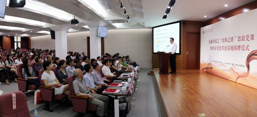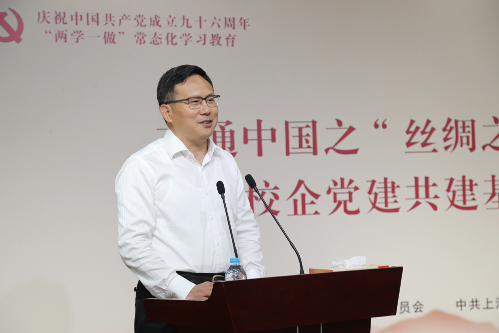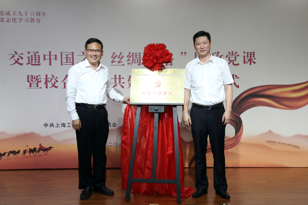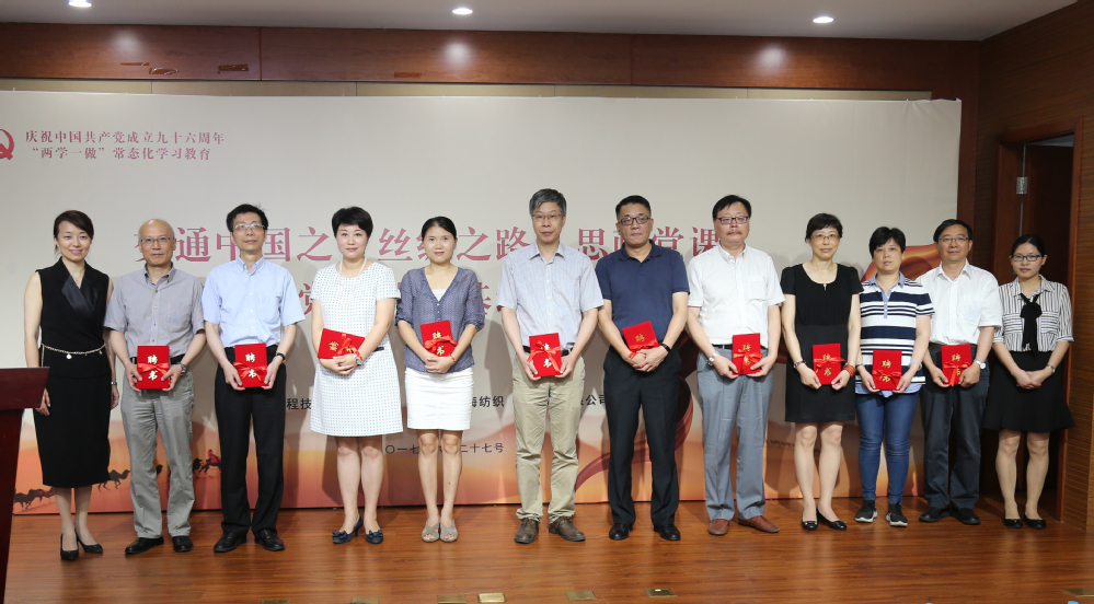 6月27日,校党委与上海纺织集团党委在长宁校区举行校企共建党建基地揭牌仪式,上海纺织集团党委书记童继生和校党委书记李江共同为服装学院党委与上海市纺织科学研究院有限公司党委共建的党建基地揭牌。童继生书记还受邀为师生上了一堂主题为“交通中国之‘丝绸之路’”的思政课,为我校交通中国系列思政课程增添了精彩一课。