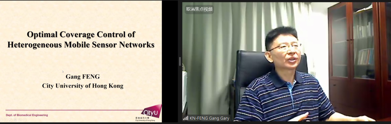在会议主题报告环节,中国香港城市大学教授冯刚教授作了关于“异构移动传感器网络的最优覆盖控制”的精彩报告,报告中提出在分布式覆盖下控制方案,保留移动传感器在圆圈上的空间顺序,就可以避免移动传感器之间的碰撞并且通过仿真模拟证实了方案的有效性。