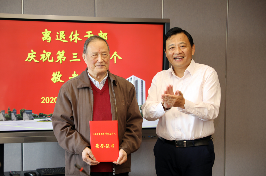 会上,李江书记为荣获“全国离退休干部先进集体”的代表、退休教工第十党支部书记顾惠云颁发了奖牌。史健勇副书记为荣获“上海市离退休干部先进个人”的离休干部施有奇颁发了证书。党委常委、党委组织部部长朱洪春,党委常委、党委宣传部部长徐阳为荣获市教卫党委系统离退休干部征文及建言献策奖项的老同志代表们颁发了证书。