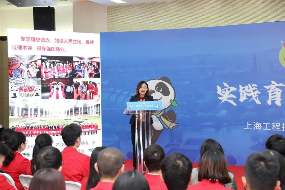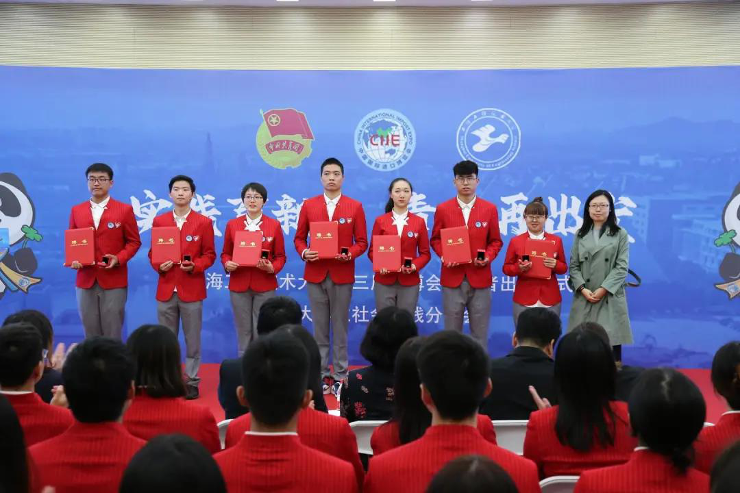 10月26日上午,我校第三届进博会志愿者出征仪式暨大学生社会实践青春分享会在图文信息中心第三报告厅举行。校党委副书记、副校长朱晓青,党委组织部部长朱洪春,党委宣传部部长徐阳,松江团区委书记吕芳,校学生工作部、研究生工作部部长朱蓓,校团委书记董旖旎出席活动,各学院团委书记,110名第三届进博会志愿者以及新生代表参加活动。