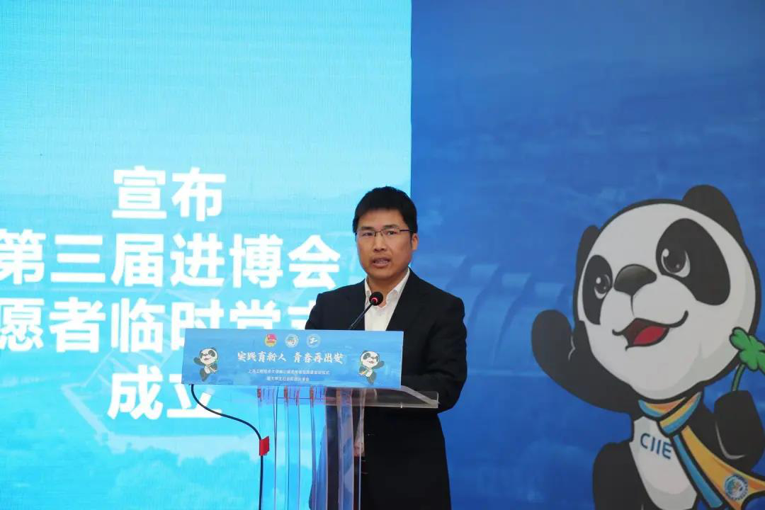 今年招募的110名志愿者中,中共党员20人,占总人数的18%。校党委组织部部长朱洪春宣布成立第三届进博会志愿者临时党支部。相信本届临时党支部一定会更好地发挥先锋模范作用,引导广大党员志愿者更好地服务进博。
