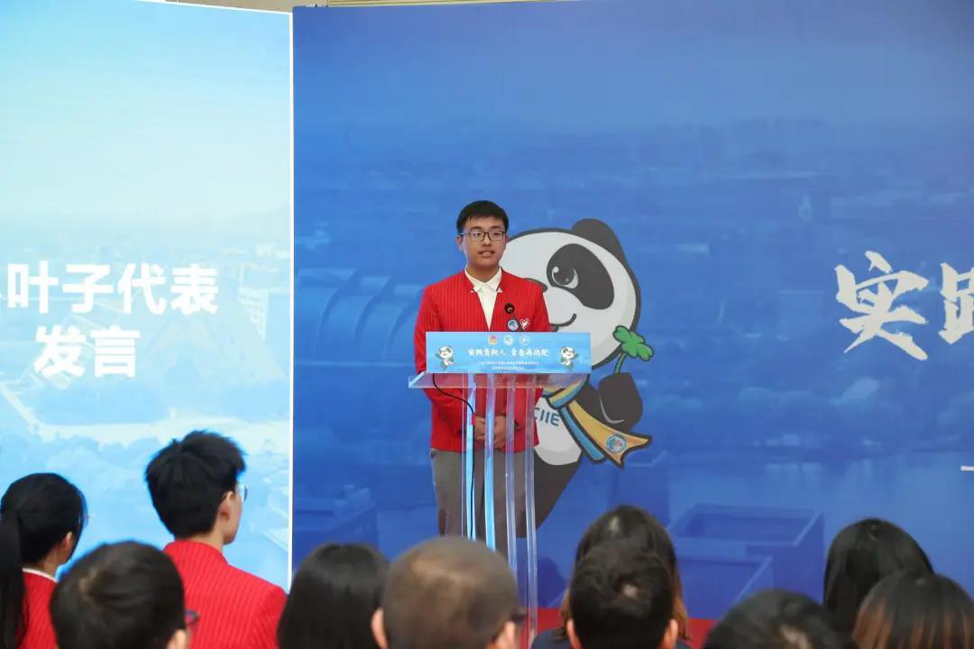 在第三届进博会志愿者出征仪式上,在二、三年级的“小叶子”们带领下,我校110名“小叶子”志愿者们庄严宣誓:“奉献友爱,互助进步,追求卓越,全力以赴,为祖国增光,为城市添彩!向前进,博青春!为进博,一起来!”他们青春激昂、掷地有声地誓言饱含着对第三届进博会服务的决心和意志。