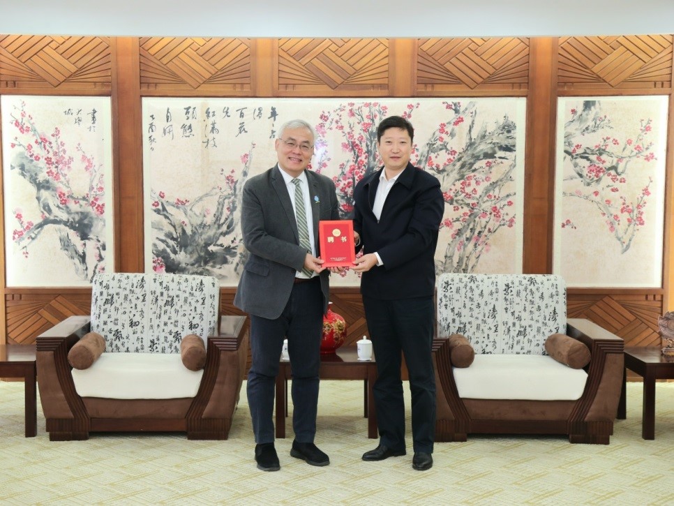校党委书记李江为周斌教授颁发聘书。李江书记表示,周斌教授搭建了中国书法与西方文化交流的桥梁,相信他的加盟将使我校国际化发展战略迈上新的台阶。