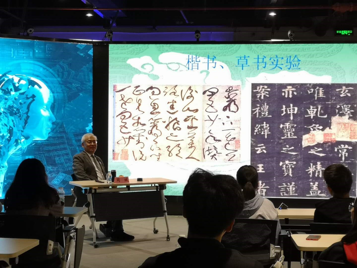 当天下午,周斌教授在我校中韩多媒体设计学院虚拟现实中心开展了一场“中国书法与对外交流”的主题讲座,讲座引领大家在美丽书法的线条世界中遨游,受到了师生的热烈欢迎。
