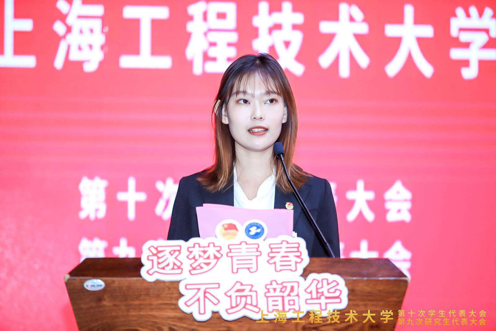 上海交通大学学生联合会主席团成员臧奕茗代表兄弟高校学生会向大会致贺词