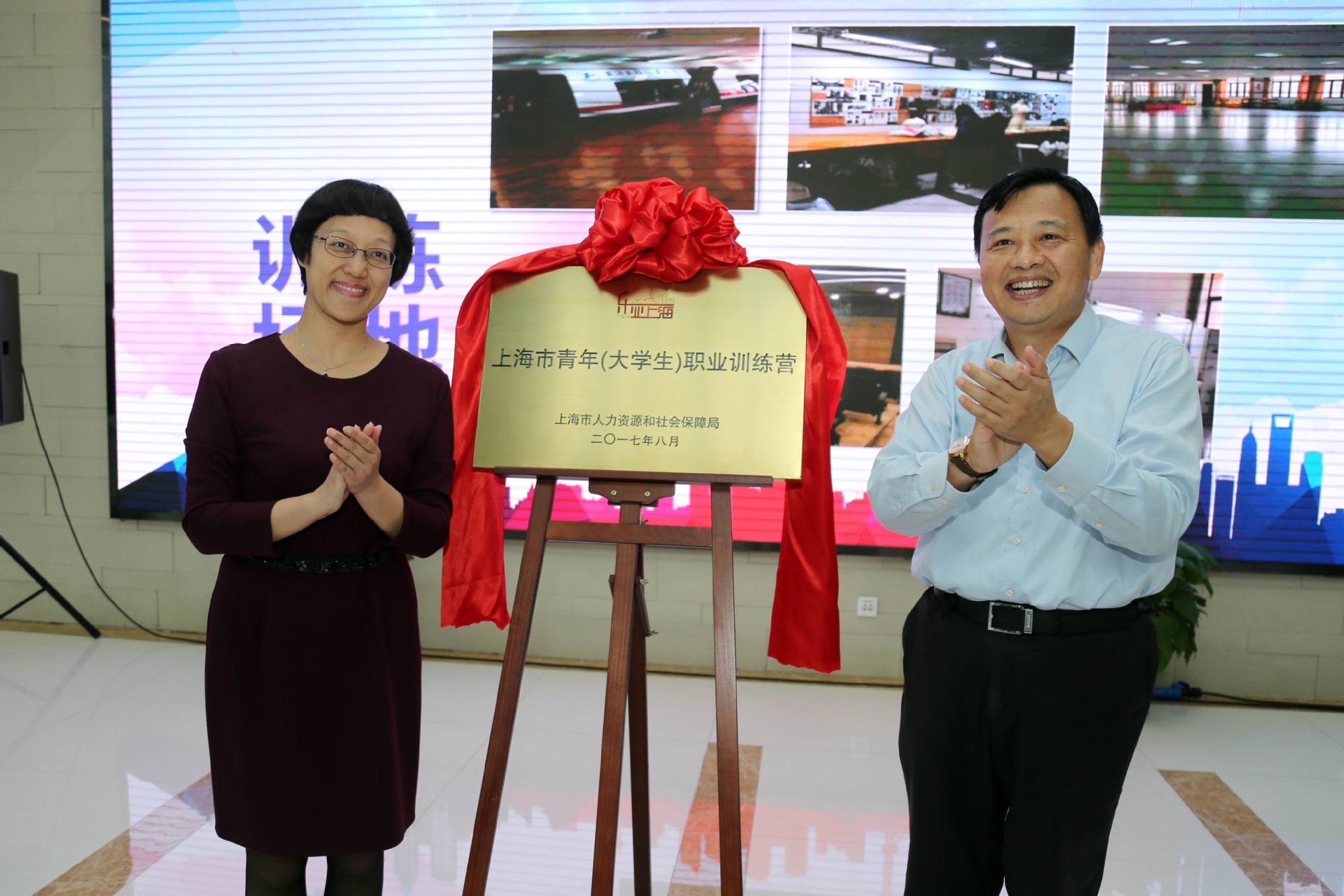 随后,张岚副局长、王玮华副区长与学生代表,共同启动“2017年上海市高校毕业生就业服务月”。王玮华副区长,史健勇副书记、副校长共同为上海工程技术大学青年(大学生)职业训练营揭牌。