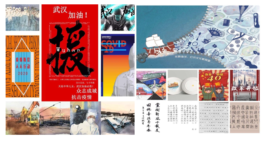遵循“以美启德”“以美育德”的方针,将高雅艺术、优秀传统文化等美学元素融入思想政治教育之中,使学生潜移默化地接受教育,实现心灵的净化。组织广大同学依托艺术、设计等专业,先后开展美育红色文创作品展、红色课程思政作品展,创作蕴含红色基因作品100余件;先后围绕全民“抗疫”等时代大背景,开展战“疫”面前“艺”起行动―艺术设计学院疫情防控师生作品征集和展示共四期,创作鲜明时代特点的作品200幅;围绕改革开放四十周年主题,开展“壮阔东方潮、奋进新时代”的书法、绘画作品40多件。很多师生还提前参与建党100年红色文创设计,不少作品即将量产,不断通过艺术教育特别是红色艺术教育来引导广大青年学生树立坚定正确的理想、信念。