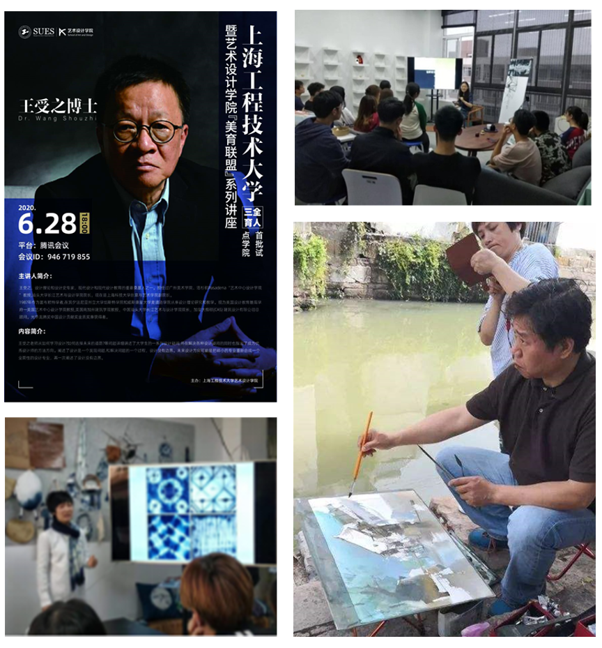 做好美育第一课堂和第二课堂的有机结合,强化美育资源供给,搭建高层次美育实践平台。与上海市大型国有企业上海国际时尚中心园区有限公司联合申报上海市大学生美育文创实践基地并成功获批,同时获批校级辅导员美育工作室。依托“艺工坊”面向全校开放美育预约实践体验,先后与上海星成汇影视有限公司合作,引进数字媒体美育资源;与车墩镇党委开展车墩丝网版画非遗进校园活动,引进国学非遗资源;积极开展美育创意和文创产品设计、战“疫”作品展,开展手绘作品、CG绘画、海报设计、书法等多种形式的实践体验,高质量打造美育实践主阵地。
