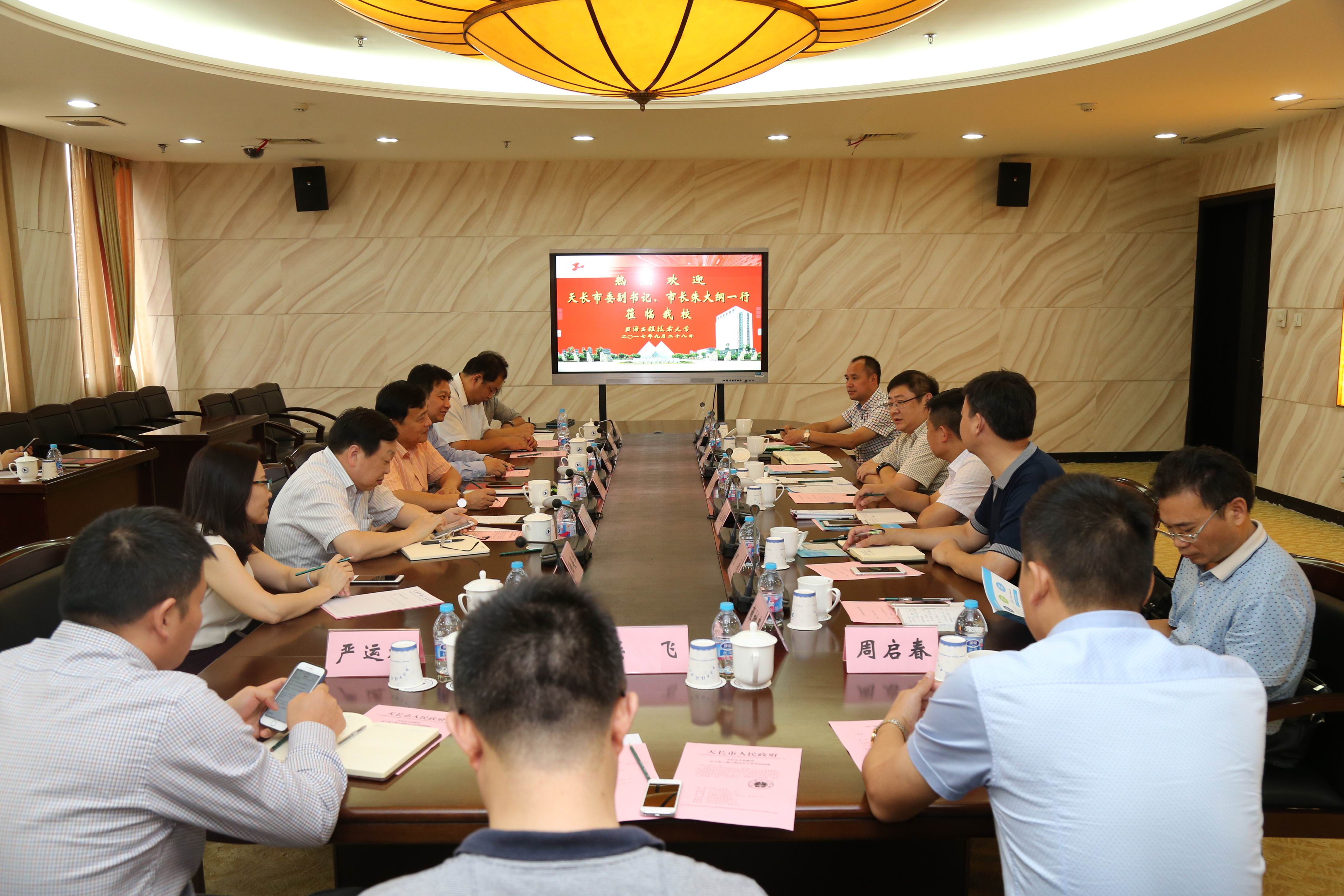 9月28日,天长市委副书记、市长朱大纲一行来校洽谈产学研合作事宜。校党委副书记、副校长史健勇接待来访客人,相关部门、学院负责人参加会议。