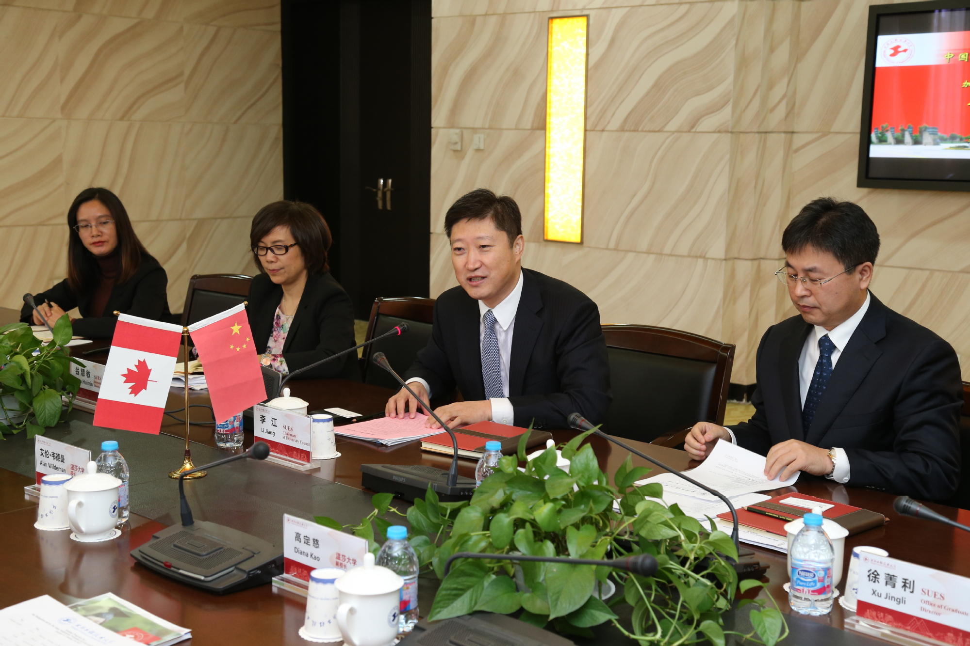 校党委书记李江对Alan Wildeman校长一行的到来表示热烈欢迎,双方就深化两校交流与合作进行了磋商与讨论。李江书记希望与温莎大学保持持久、稳定的友好合作关系,并向Alan Wildeman校长介绍了学校发展的“三大战略”,特别是在上海建设具有全球影响力的科技创新中心的背景下,在推进学校国际化战略进程中,我校正加快转型发展的步伐,同时学校作为“新工科”建设地方院校的牵头单位,在新工科领域与温莎大学具有广泛合作的前景,他希望两校的合作向高水平、全方位方向迈进。