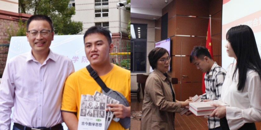 数理与统计学院将伟大党课党建作为开展爱国主义教育和主题教育的重要抓手,通过对学科前沿的引入,建设以理想信念教育为核心,开拓创新教育为重点的物理、数学学科伟大党课系列课程,同时针对青年学生和党员教师的特点,依托资源、学科平台,引导广大师生学思践悟,增强学习教育的政治性、理论性。开学季,学院党委书记钱慧敏为新生上了一堂“坚定信念紧跟党走、一起奋斗担负使命”党课并向学生赠送经典党政书籍,做好促进大学生成长成才的引路人。殷志祥院长为新生准备特殊礼物,三套由院长签名的数学名著《古今数学思想》分别送给报到最早的、考得最好和年纪最小的新生,并寄语他们从数学学习中寻找激发灵感的力量。学院还积极号召学生前往家乡革命历史纪念馆,追寻红色足迹,行知“四史”力量;组织师生发挥专业特色,应用数学统计专业知识分析疫情防控,科研战“疫”,数学解“疫”;开展“G60思政育人”主题活动,与学生一同云参观全国爱国主义教育示范基地沙家浜革命历史纪念馆。同时,学院将理想信念融入党课党建实践中,注重科学的思维训练和科学伦理教育,培养学生科技强国的责任感和使命感,充分增强学生国家意识、爱国主义情怀,激发学生的爱国主义精神和为国奉献的责任感。