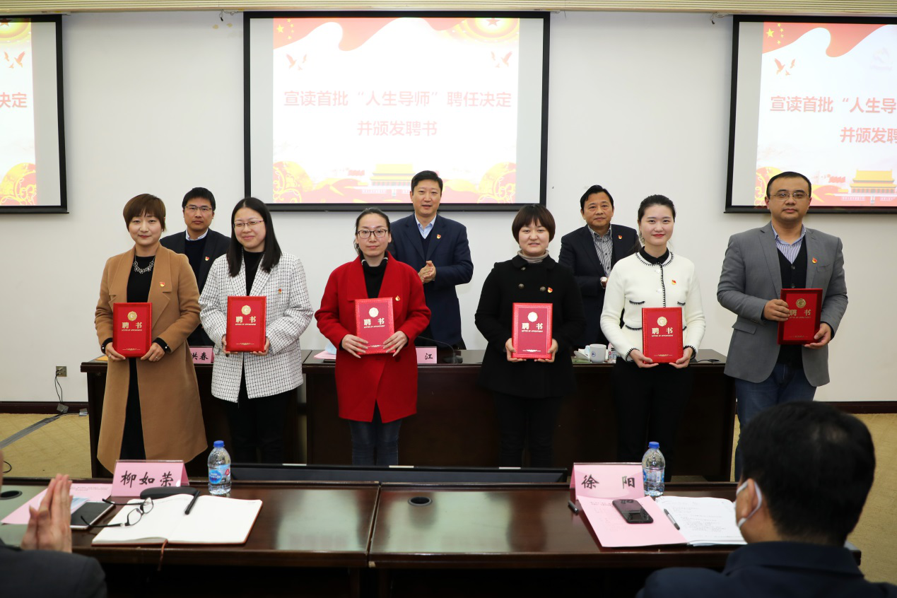 为切实发挥机关科(职)级干部育人作用,充实我校三全育人工作队伍,机关党委聘任40位机关科(职)级干部为首批三全育人“人生导师”。史健勇副书记宣读了聘任名单,校领导为“人生导师”代表颁发证书。