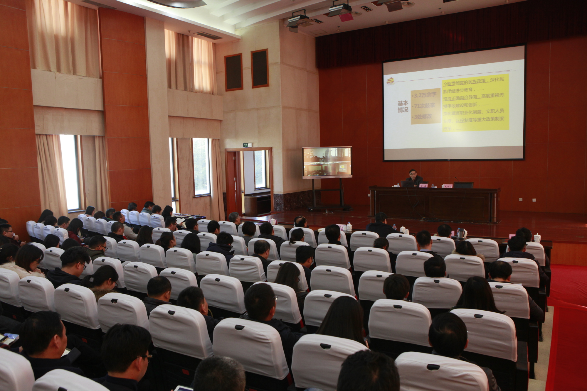 曾峻教授紧紧围绕学习宣传贯彻党的十九大的要求,从新时代的依据与意义、新思想的体系与内容、新作为的取向与任务三个角度,详细解读了党的十九大精神,深刻阐释了党的十九大提出的一系列重要思想、重要观点、重大论断、重大举措。