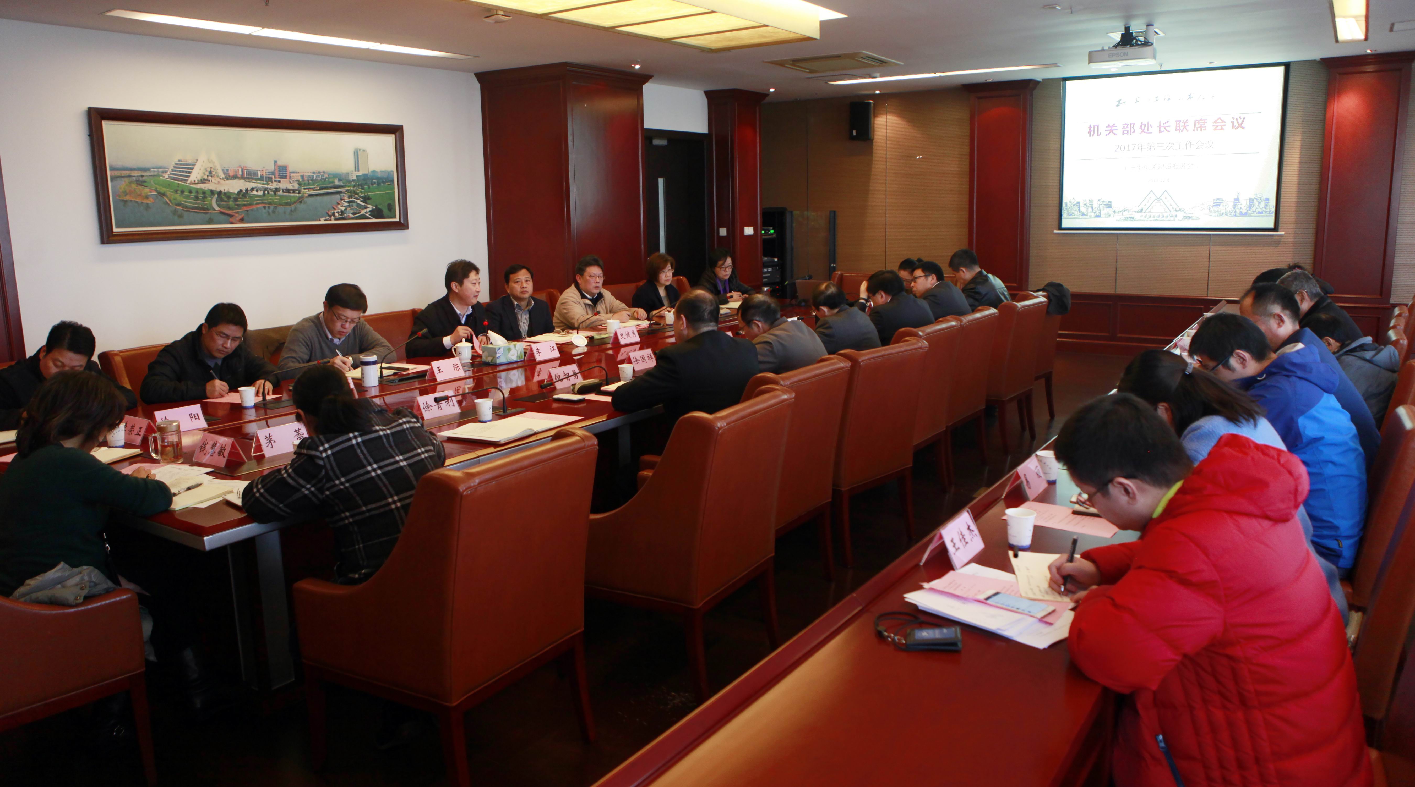 12月8日,机关党委召开了2017年第三次机关部处长联席会议。机关部处长,信息办、图书馆、产业办、后发中心负责人出席了本次会议。校党委书记李江出席会议并作重要讲话。会议由校党委副书记、副校长史健勇主持。