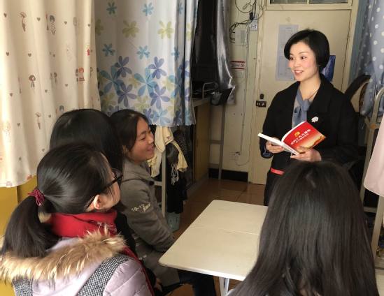 形式多样,春风化雨。大学生宣讲团通过各种方式深入同学之中,围绕党的十九大精神大学生应该“学什么”与“怎么学”两个专题开展理论宣讲活动。进寝室。大学生寝室既是他们休息的场所,也是其畅谈理想的重要空间,宣讲团成员以同学的身份,联系个人发展实际,与寝室同学畅谈大学生使命担当、个人梦想,紧紧围绕十九大报告提出的新思想、新论断、新目标以及习近平新时代中国特色社会主义思想,畅谈体会,让其他同学一起交流,使思想得到共振、共鸣。进社团。通过与学生社团成员的学习交流,结合青年学生思维活跃、朋辈互助的特点,以“学习小组”为依托,通过学生社团成员之间互帮互学、学讲结合、以讲促学,强化宣传教育,培养和造就一批青年马克思主义学习骨干。进党课。学生宣讲团将十九大精神与学院二级党课的教学内容进行有机融合,实现了十九大精神进学生党员、入党积极分子教育课堂。宣讲团结合自身学习的感悟与体会,从文化自信到生态文明,从反腐倡廉到大国外交,从缅怀先烈到畅想未来,其激情洋溢的宣讲赢得了同学们的阵阵掌声。进团课。宣讲团成员中有学校志愿者、有学生干部、有科创能手,他们紧密围绕十九大精神,有机结合大会精神和自身实际,分“铭初心、牢记使命”“中国梦、青春同行”“新时代,奋发有为”等多个篇章开展了主题鲜明、内容丰富、形式各具的宣讲。进园区。学生生活园区是大学生生活、学习、交往、文化娱乐的公共区域,也是传承大学精神、彰显学校特色、开展思想教育的重要阵地,学生宣讲团在园区以主题讨论、故事分享等形式宣讲十九大的主题和主要成果、历史性成就和变革、新时代新思想新方略等方面的新认识、新收获,以一人主讲,大家参与的形式,扩大宣讲的影响。进网络。宣讲团成员结合自身在学习十九大报告过程中,自己最有感悟、收获颇多的一个小话题,通过拍摄成5-8分钟的小视频,借以通过网络等路径让更多的人能分享到自己的体会并参与到互动中,使得十九大精神更形象、更直观的为大学生们所理解与接受。