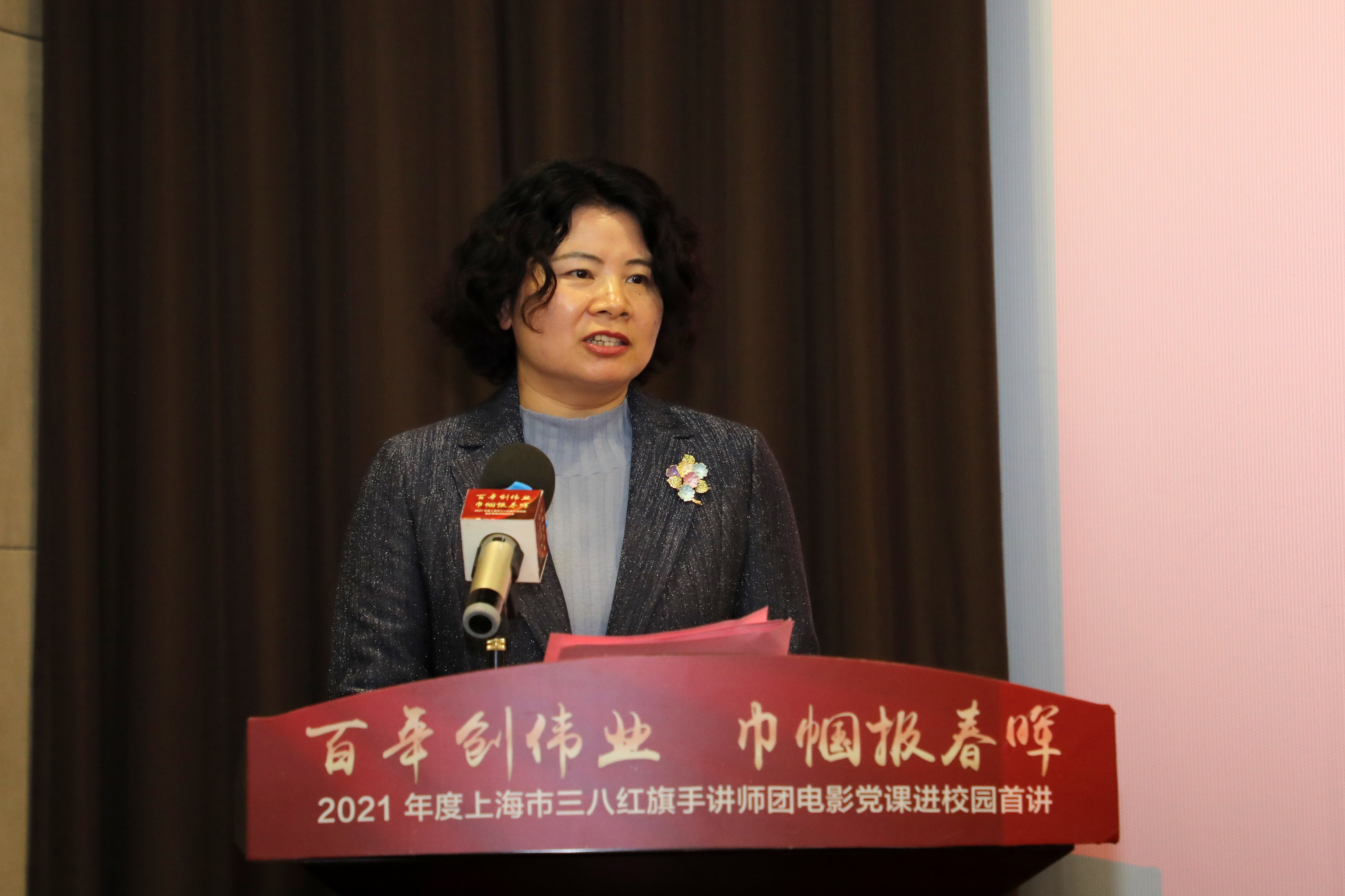 上海市教育系统妇工委副主任、上海市教育工会女教职工委员会副主任张芳致开幕词。她指出,历史是最好的教科书,我们党的百年奋斗史就是培养社会主义建设者和接班人最生动的教材。希望通过电影党课这种形式,将红色教育、爱国主义教育、社会主义核心价值观等融入党史学习教育中,让党课“活”起来,更好地激发广大师生参与党史学习教育的积极性和主动性。