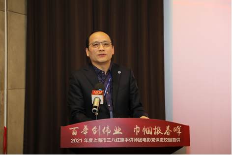 4月16日下午,“百年创伟业 巾帼报春晖”——2021年度上海市三八红旗手讲师团电影党课进校园活动在我校木瑾校园影院正式启动,百名师生通过电影党课的形式,追忆红色记忆,赓续精神血脉,汲取前行力量。