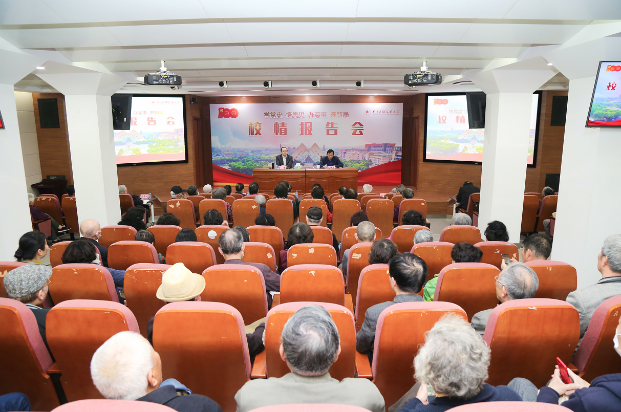 4月21日下午,学校在长宁校区召开“学党史、悟思想、办实事、开新局”老同志校情报告会,校党委副书记、校长俞涛为老同志们作校情报告。退休局级老领导、退休党员、老教授协会会员、关工委委员、退休教职工150余名老同志齐聚一堂,全神贯注地聆听了俞校长的报告会。会议由校党委副书记、工会主席史健勇主持。