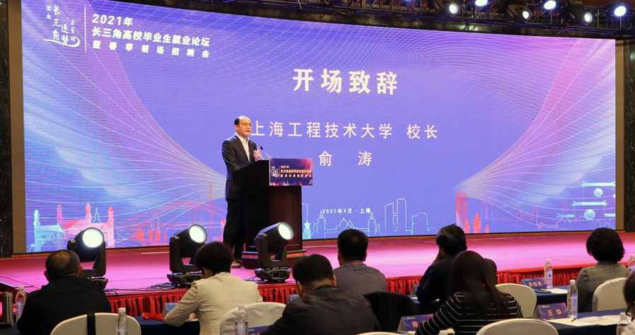 4月21日至23日,2021长三角高校毕业生就业论坛暨春季现场招聘会系列活动在松江大学城举行。本次系列活动由上海市教育委员会指导,上海市学生事务中心、上海市人才服务中心和我校主办,江苏省高校招生就业指导服务中心、浙江省教育发展中心、安徽省大中专毕业生就业指导中心联合举办。教育部全国高等学校学生信息咨询与就业指导中心副主任宁小华,上海市教委副主任倪闵景,校党委书记李江,校党委副书记、校长俞涛,校党委副书记、副校长朱晓青出席了此次活动。来自全国的200余位省市、高校就业中心主任及企业人力资源负责人参加了此次活动。