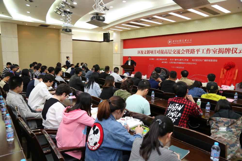 仪式前,区校双方举行了简短的文创项目对接及松江科技影都建设交流会,商谈了“文化创意产业创新研究中心”合作事宜,洽谈的项目包括联合建设全球影视创制中心、全球动漫游戏原创中心、网络文化发展研究中心、国际影视高端人才发展中心、重点领域合作开发项目库等。