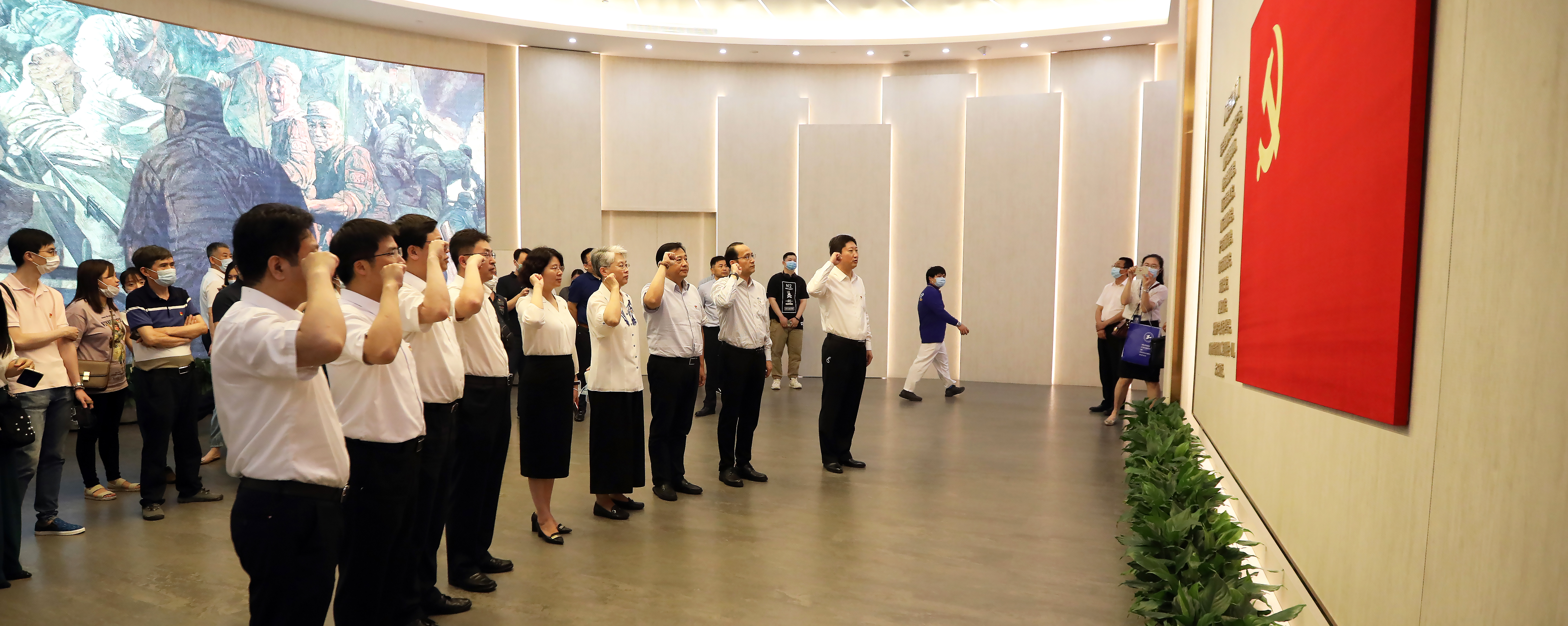 “我志愿加入中国共产党,拥护党的纲领,遵守党的章程,履行党员义务,执行党的决定,严守党的纪律,保守党的秘密,对党忠诚,积极工作,为共产主义奋斗终身,随时准备为党和人民牺牲一切,永不叛党。”在中共一大会址纪念馆宣誓厅,校党委书记李江带领与会的党员同志们面对党旗,重温入党誓词,以庄严的宣誓,表达不忘初心、牢记使命的坚定信念和决心。校领导班子成员共同参观了“伟大的开端——中国共产党创建历史陈列”展览,包括序厅、“前仆后继、救亡图存”“民众觉醒、主义抉择”“早期组织、星火初燃”“开天辟地、日出东方”“砥砺前行、光辉历程”和尾厅7个板块,体味着建党初期先辈们开天辟地、敢为人先的顽强精神。一件件饱含历史沧桑的珍贵文物和图文影像,让每一位党员用心体会和铭记每一件展品背后所蕴含的深刻故事和伟大精神,回忆党的历程,领会党的宗旨,感悟党的初心。