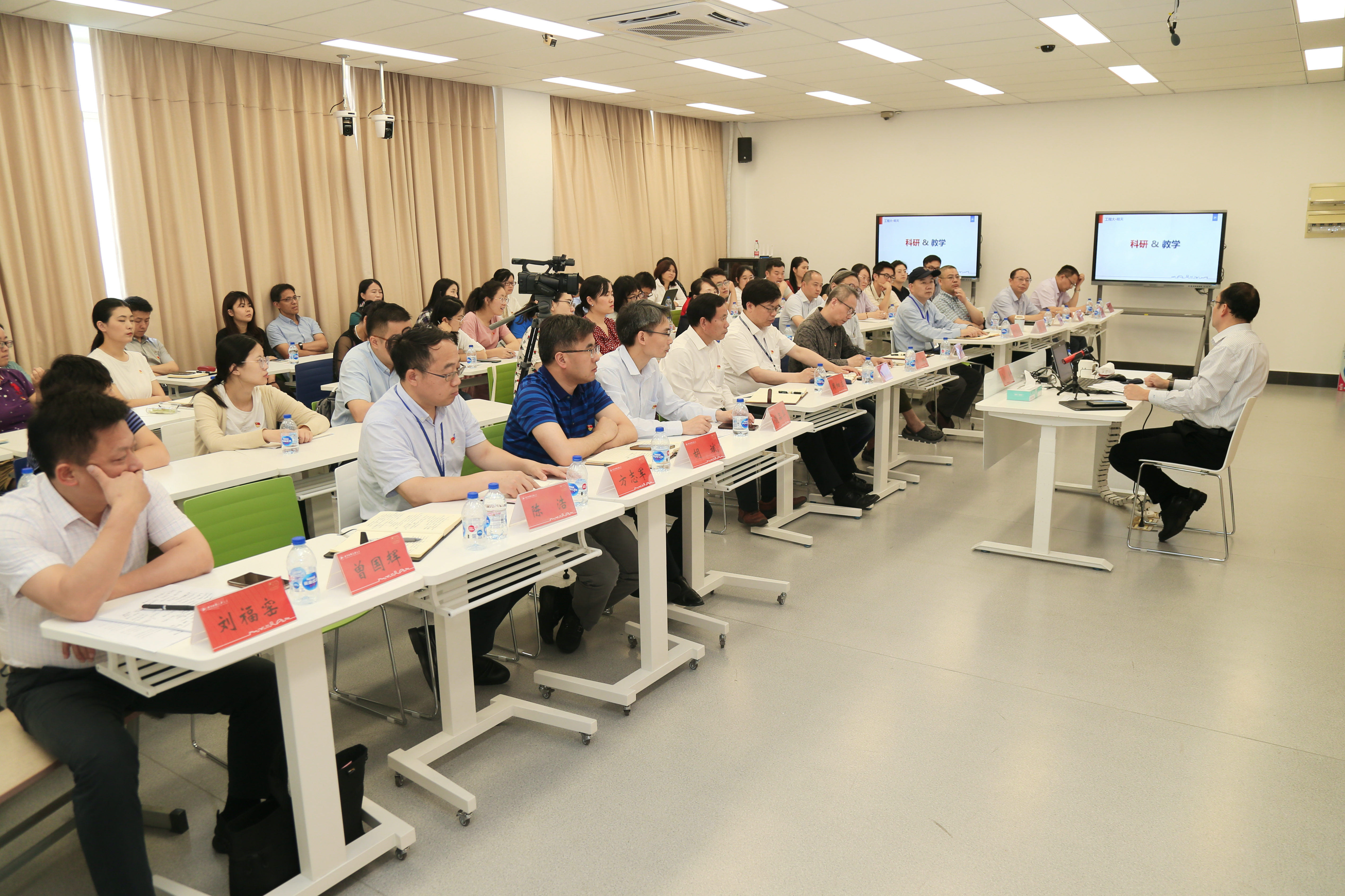 俞校长强调,大学发展要落实立德树人根本任务,立足学校特色,尊重教育规律,办理性的教育,负责任的教育,培养更多的应用型人才,更好的服务企业、行业、产业,把学校建成国内一流的高水平现代化工程应用型特色大学。俞校长最后寄语老师们,要干得更实,勇挑最重的担子、敢啃最难啃的骨头,愿大家一起奋斗,以扎实的政治执行力服务学校发展事业,让“工程大”成为“大成功”,以优异成绩庆祝建党100周年。