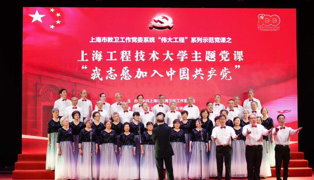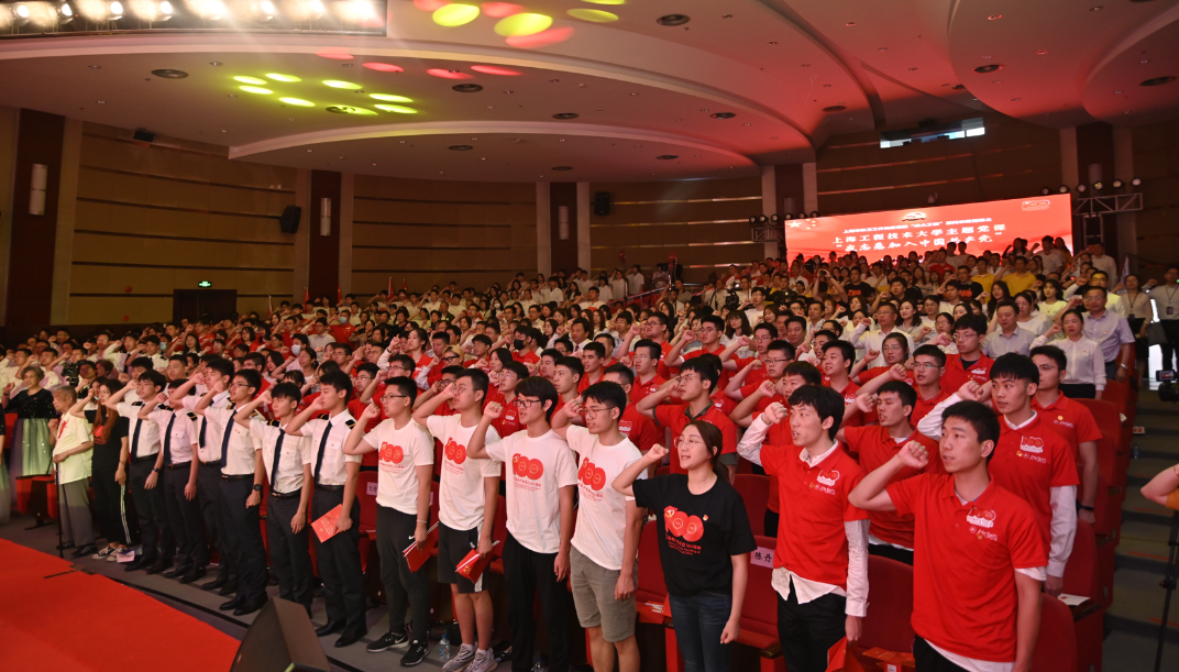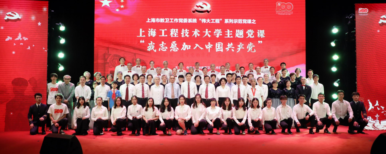 为庆祝中国共产党成立100周年,深入开展党史学习教育,6月25日下午,市教卫工作党委系统“伟大工程”系列示范党课之“我志愿加入中国共产党”主题党课在上海工程技术大学开讲。学校领导班子成员、中层干部、新党员、师生党员代表等500余人现场参加了党课学习。松江区委组织部、兄弟高校嘉宾应邀出席。