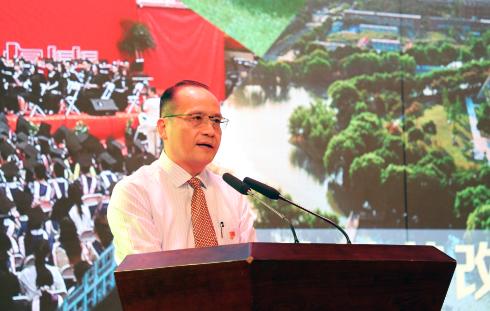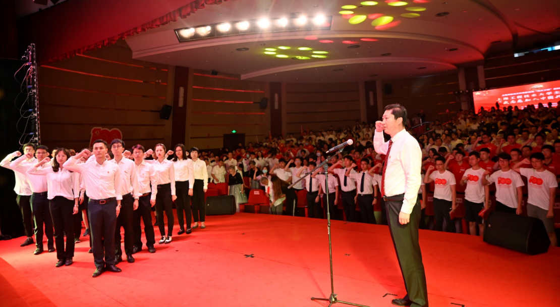 “我志愿加入中国共产党,拥护党的纲领,遵守党的章程,履行党员义务……随时准备为党和人民牺牲一切,永不叛党。”校党委书记李江带领新党员及全场党员重温入党誓词,铮铮誓言铿锵有力,将党课推向高潮。
