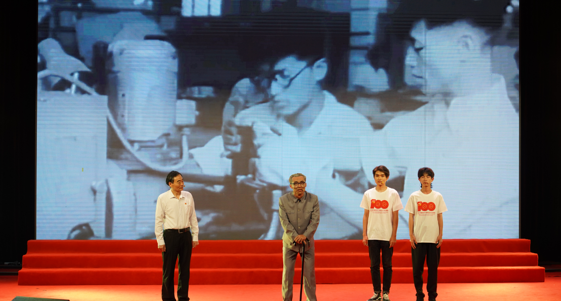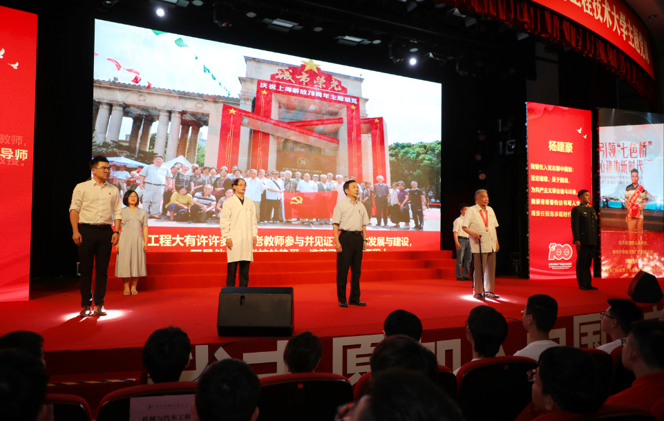 “百折不回,我一定要实现工业救国的理想”,这是上海工程技术大学首任校长周志宏毕生追求的人生理想。第三篇章情景剧《腾飞之路》,由学校马克思主义学院党委书记许传宏老师以及学生代表担纲主讲,与学校首任校长、原中国科学院院士(学部委员)周志宏校长进行了一次穿越时空的对话。时间回到1985年,周校长为中国第一个现代化钢铁企业上海宝钢1号高炉点火的仪式现场,建校之初广大共产党员在一穷二白、百废待兴的现实境况中艰苦奋斗、接续奋进,在科技攻关和科技创新之路上敢为人先、勇攀高峰的故事激励着现场的所有观众。