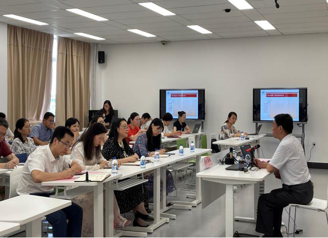教学质量是学校发展的生命线,为牢固树立“质量为王”的教育理念,紧抓课堂教学主阵地、课程育人核心要素,6月25日下午,学校邀请上海工程技术大学原副校长、现校督导组组长陈力华教授做题为《教学质量与课堂教学评价》的专题讲座。陈力华教授主要对教学质量工程建设的内容和课堂教学质量评价两个方面做了详细介绍,对教育部本科教学相关文件进行梳理,通过案例展示强调了教学大纲、教材、教案、多媒体课件等教学资料规范性的重要,并结合教学督导经历对老师们在课堂教学中如何实现价值引领,做好教学准备、教学内容、课堂秩序等进行指导,使老师们认识到要将质量意识贯穿于教学各个环节,形成教书育人的质量文化。教务处处长陈浩对本次一流课程系列培训做了最后总结,表示学校将大力推进一流课程建设,持续深化课堂教学改革,并对后续学校一流课程建设相关工作安排做了简要介绍。