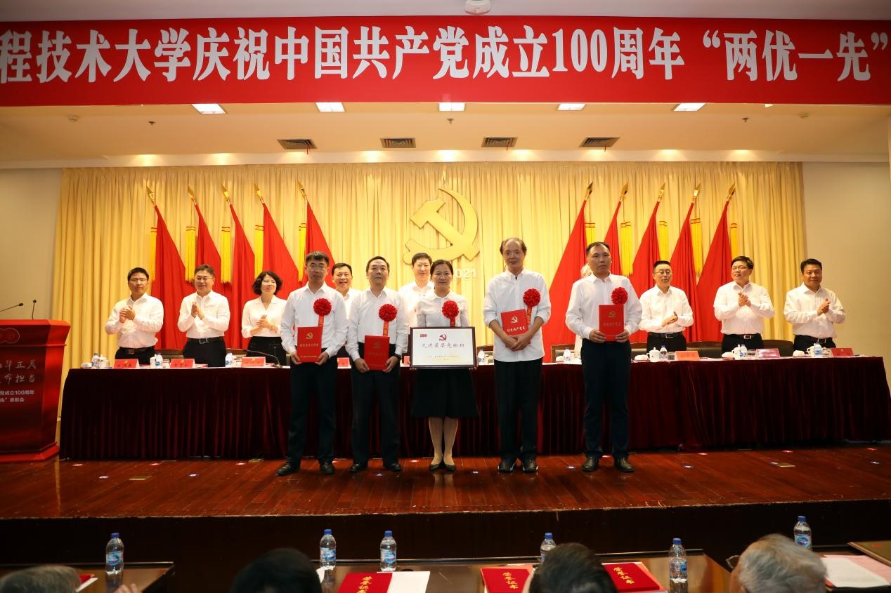 校领导为学校“先进基层党组织”颁发奖牌