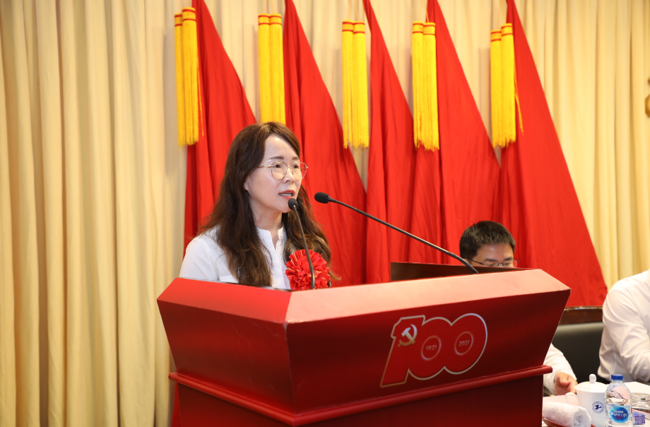 “优秀共产党员”代表、航空运输学院党委教师党员党淑雯以“守初心立德树人 担使命继往开来”为题从明道、立德、治学、爱生四个方面交流分享了作为一名党员教师的初心使命。