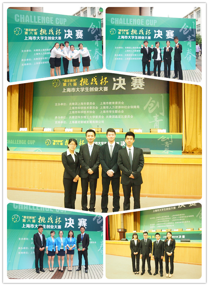 自第八届“挑战杯”上海市大学生创业大赛启动以来,团委在全校层面积极组织、动员有志创业、创新的青年才俊申报参赛,共收到申报项目50余项。团委邀请多年担任全国评审委员会主任的陈爱国先生做全校性的专题培训,邀请来自企业界、创业教育界、竞赛组织界具有权威性的专家、风险投资专家担任校内赛评审。经过多轮校内公开、公正、公平的书面、答辩评审,最终有8支队伍代表学校参加上海市“挑战杯”创业计划竞赛、2支队伍参加公益创业赛、4支队伍参加创业实践挑战赛。经过上海市的严格选拔,4支队伍入围创业计划大赛上海市决赛,1支队伍入围公益创业赛上海市决赛。决赛阶段,校领导和学院党政领导高度重视并关心入围团队,项目指导教师全情投入,团委书记多次召开推进会议,把关答辩环节,全力做好后勤保障工作。