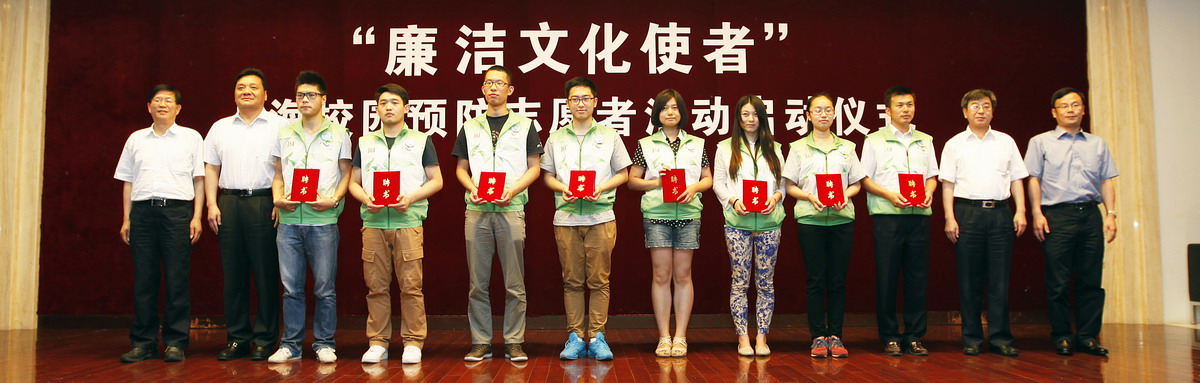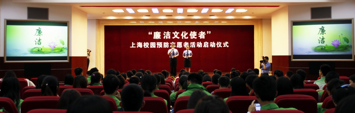 6月10日下午,“廉洁文化使者”上海校园预防志愿者启动仪式在我校图文信息中心第二报告厅隆重举行。校党委副书记、纪委书记田信灿,上海市检察院、松江区检察院、松江区纪委、松江大学城七所高校纪委和团委负责人,以及七校志愿者共一百多人参加启动仪式。田信灿副书记和松江区检察院检察长杨玉俊等为志愿者代表颁发了证书,志愿者代表在会上发言,上海市检察院预防处处长戴杰对志愿者活动提出了希望和要求。