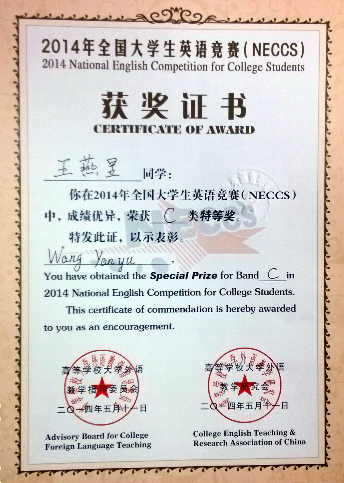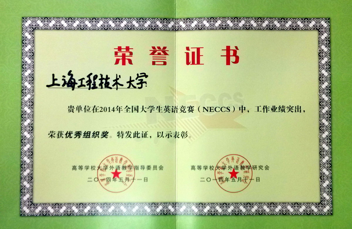 同时,我校也荣获2014年全国大学生英语竞赛优秀组织奖。教务处和基础学院相关的工作人员和老师以及参赛同学付出了辛勤工作!