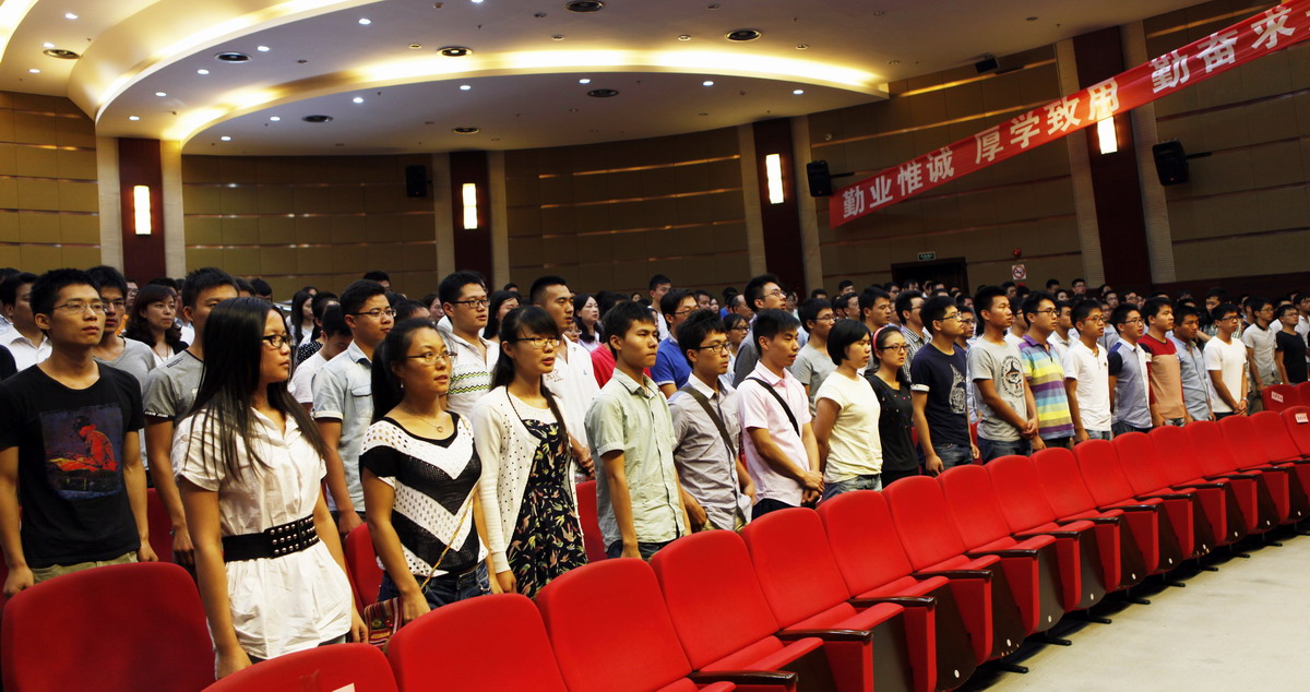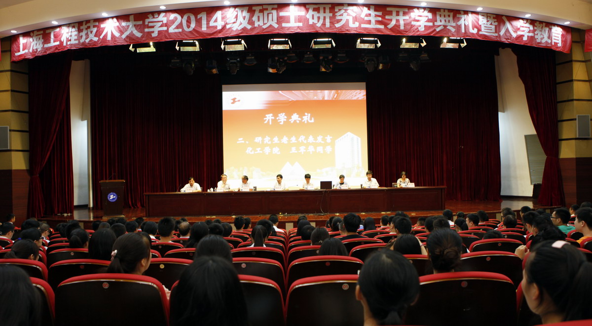 9月15日下午,我校在志宏堂举行2014级硕士研究生开学典礼。校党委书记滕建勇、校长丁晓东、校党委副书记夏斯云、裴小倩、副校长孙培雷、程维明、史健勇出席。各研究生培养学院负责人、研究生部(处)等处室负责人、研究生导师代表、研究生辅导员、研究生秘书和全体2014级400多名研究生新生参加典礼,开学典礼由副校长程维明主持。
