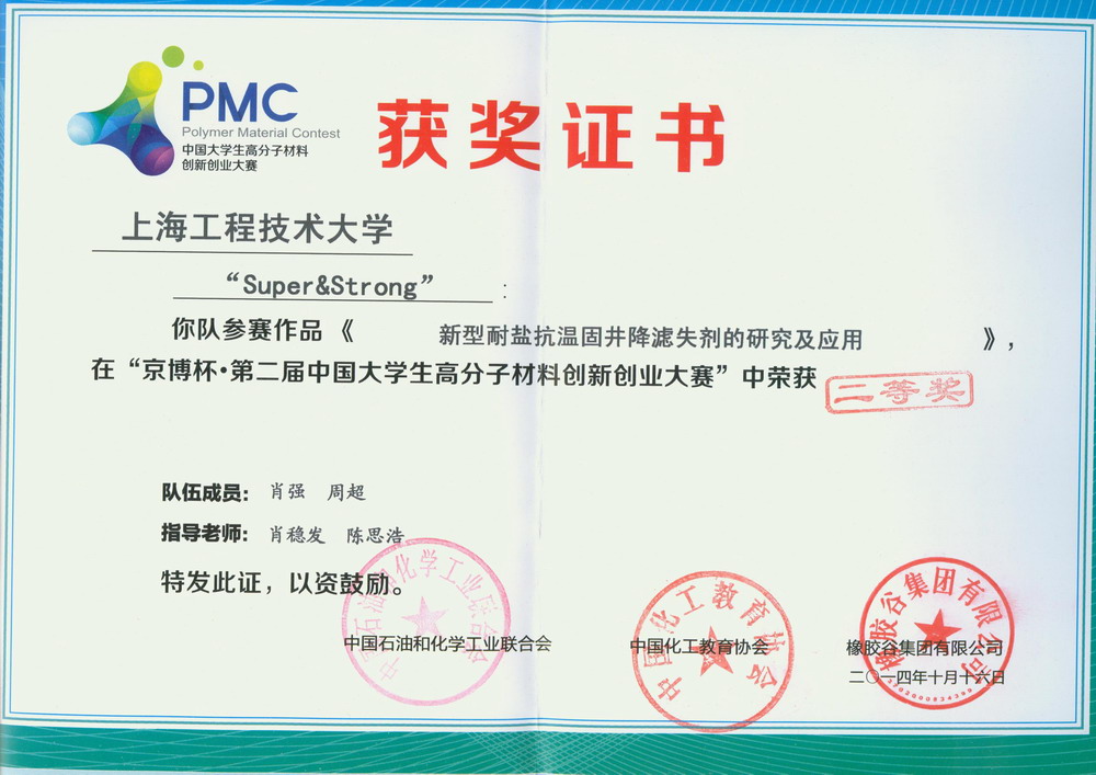 10月16日,京博杯·第二届中国大学生高分子材料创新创业大赛(PMC大赛)经过四天的激烈而紧张的决赛和总决赛终于在青岛落下了帷幕。我校首次参加该项比赛,化学化工学院肖强和周超组成的Super@Strong团队和王军华领衔的磐石创业团队分别获得二等奖和三等奖的好成绩。陈思浩教授和王锦成教授获得本次大赛的优秀指导教师。大会组委会还对Super@Strong团队进行了专访。