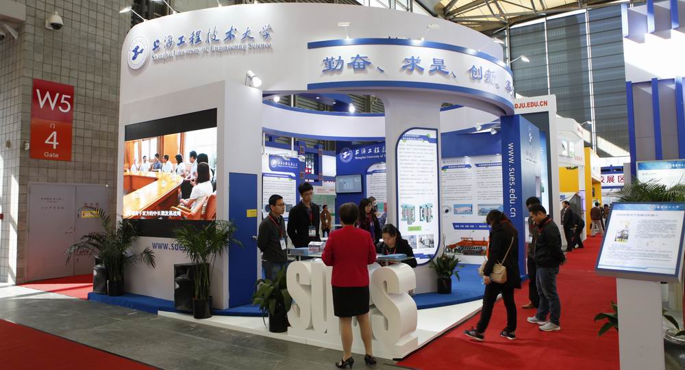 除此之外,学校特别重视我校展位的设计建设工作,通过方案的反复优化设计,实现了所有参展机器设备和图文影像的合理布局,充分体现了我校科研实力和学科建设跨越式发展所取得的成绩,彰显了我校“三协同”发展模式中的“协同创新”。