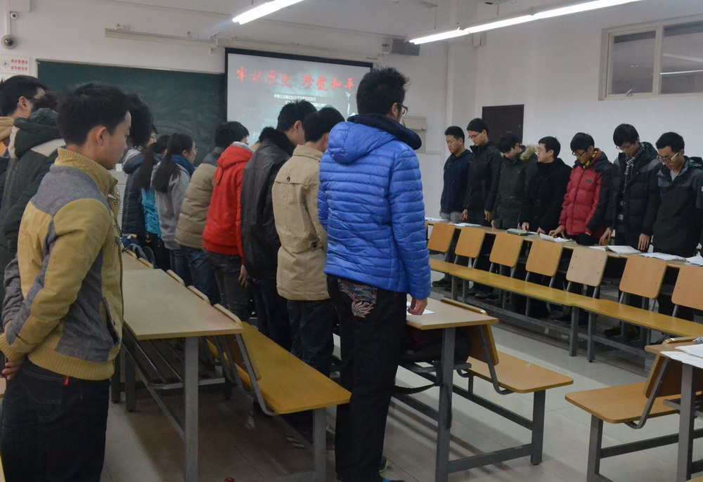 12月13日上午,各学院举行主题班会活动,组织学生观看公祭日现场直播。在仪式正式开始之前,全体师生为在南京大屠杀死难同胞默哀一分钟,以表达对死难者的悼念。同学们在直播结束后的座谈中表示,将南京大屠杀遇难同胞纪念日上升为国家公祭日,顺乎民意,也合乎世界潮流,不仅有现实意义,更具有深远的历史意义。这不是要记住仇恨,而是告诫后人勿忘国耻,凝聚起实现民族复兴中国梦的强大力量。还是我们中国政府和中国人民向世界表明态度,我们反对战争,维护和平,尊重人的价值和生命的价值,是用世界眼光和历史眼光来面对苦难记忆。随后,师生一同观看纪录片《1937南京真相之为了和平》,同学们在讨论中心情沉重,有的同学呼吁不忘历史的同时要理性爱国,有的同学表示对当代大学生的民族责任感有了更深刻的体会,有的同学立志珍惜难得的学习环境,奋发图强认真学习,为实现民族复兴贡献一份学子的力量!