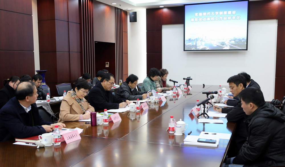 12月12日上午,本市实施现代大学制度建设首批试点高校年度工作总结会在我校召开。会议听取了七所试点高校2014年度现代大学制度建设试点工作开展情况,并对2015年的工作任务进行了部署。