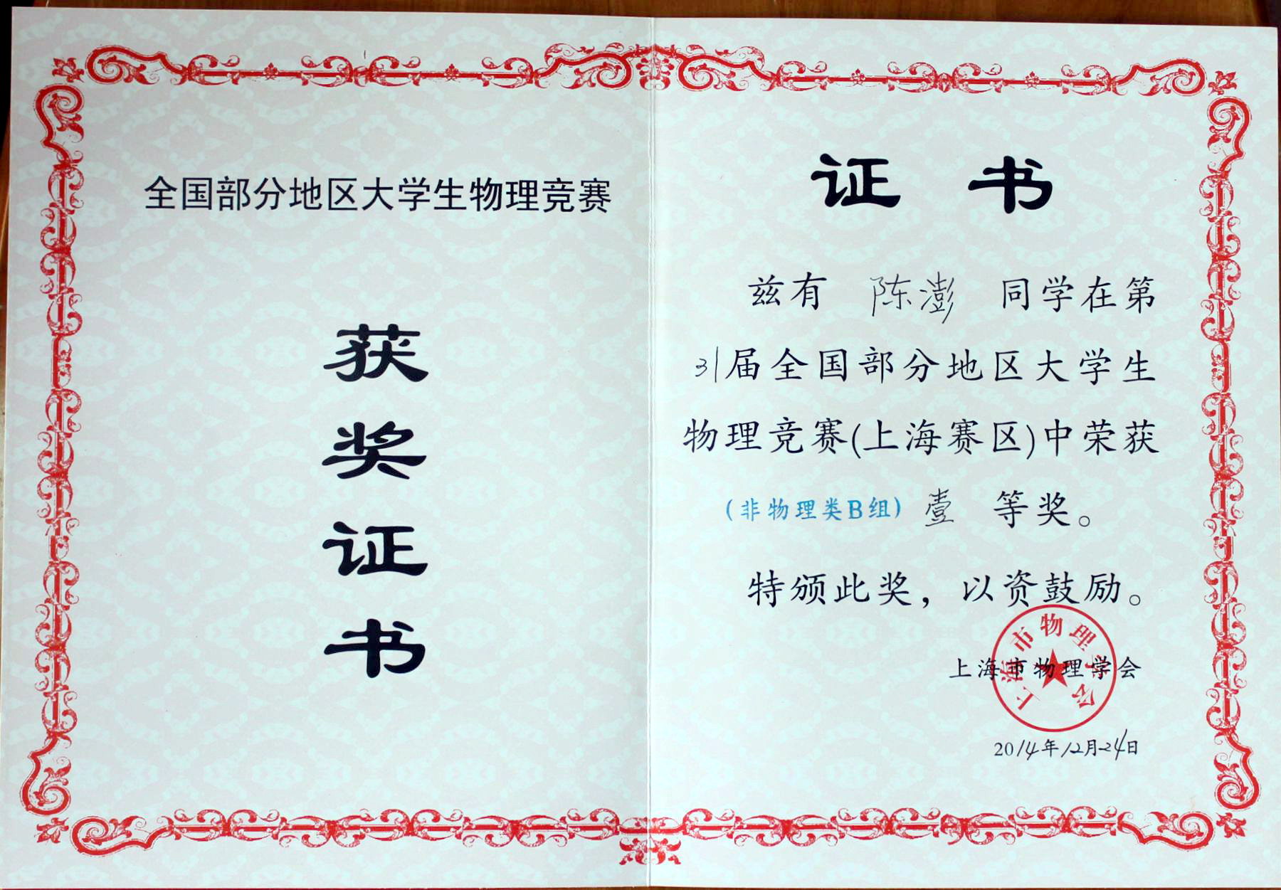 第31届全国部分地区大学生物理竞赛由上海市物理学会组织。在激发学生的学习热情、提高教学质量,从而促进物理教育的改革、适应科技发展、培养创新精神的思想指导下,竞赛共分为五个组分别报名和评奖,全市几乎所有开设大学物理课程的高校都派出了学生参加。在学校、学院领导和物理教学部各位老师的大力支持下,在参赛同学的共同努力下,我校获得优异成绩。