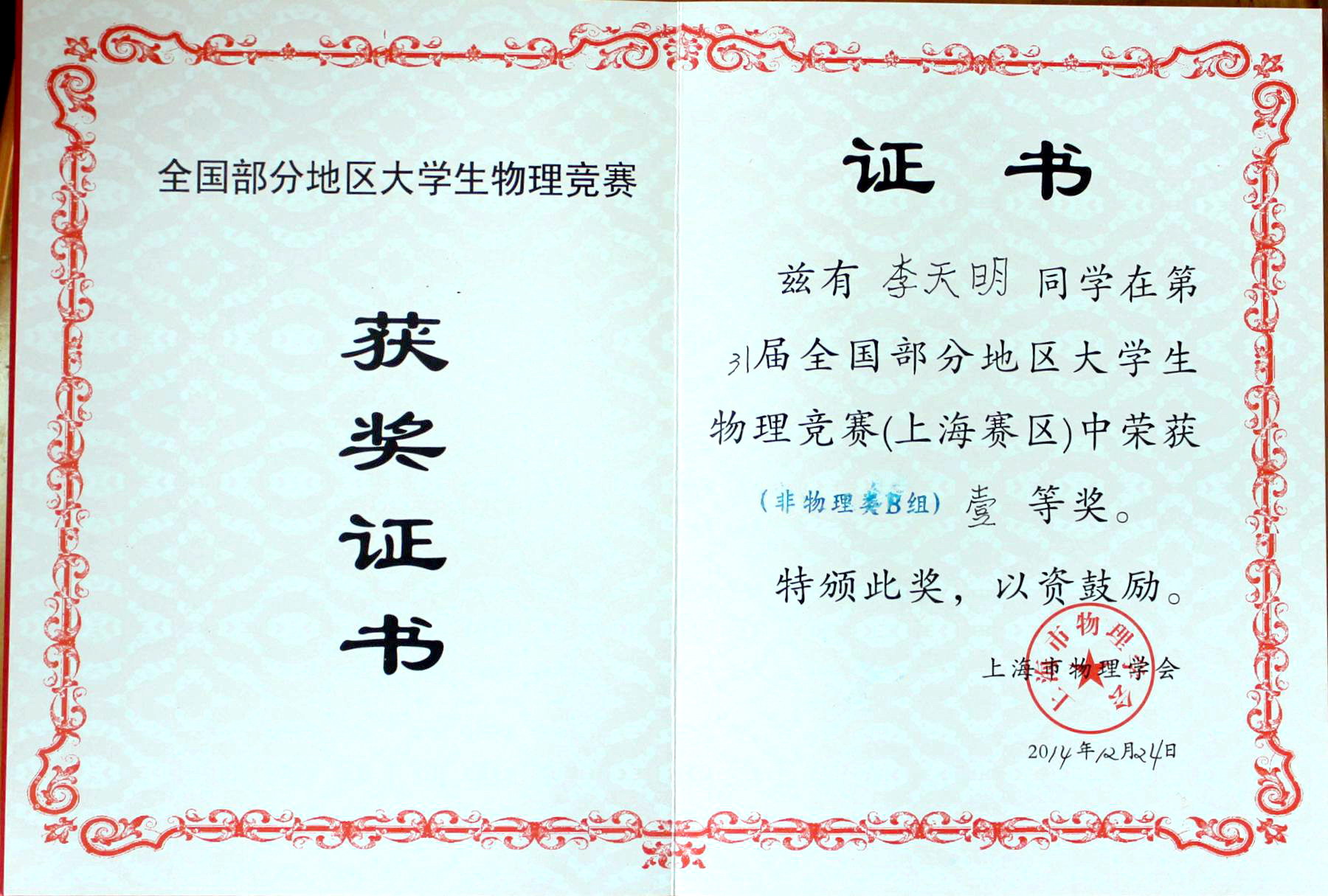 第31届全国部分地区(上海赛区)大学生物理竞赛于近日圆满落下帷幕,组办方处传来佳音:我校学子在去年良好成绩的基础之上,再创佳绩,共有24名同学获奖,其中3名同学荣获一等奖,7名同学荣获二等奖,14名同学荣获三等奖。