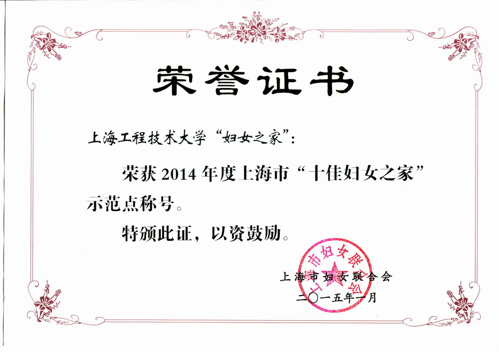 我校荣获2014年度上海市“十佳妇女之家”示范点称号