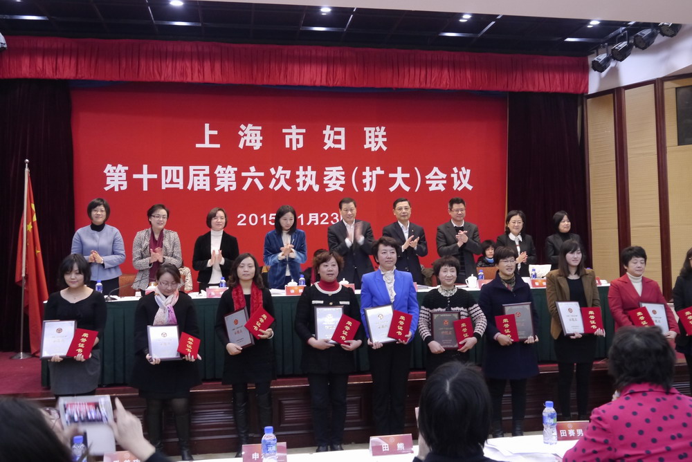 123日举行的市妇联十四届六次执委(扩大)会议上,我校“妇女之家”在校党委的坚强领导下、以“妇女之家全覆盖、一家一品大舞台”品牌特色被授予2014年度上海市“十佳妇女之家”示范点称号,我校代表、校工会常务副主席沈海庆同志从市委副书记应勇手中接过奖牌。