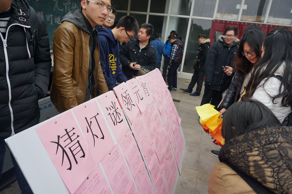 元宵节是家人欢聚一堂品元宵享团圆的盛日,2015年新学期的开学次日恰逢羊年元宵佳节,很多外地的学生因远赴他乡求学而不能与家人团聚共享佳节。为缓解异地学子“独在异乡为异客,每逢佳节倍思亲”的思乡之情,学校为每位学生准备了一碗汤圆,学生会还开展了“吃元宵猜灯谜”活动,使同学们的课余生活丰富多彩。