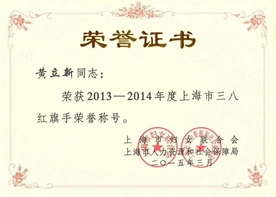 他们是:工程实训中心的黄立新同志被评为2013~2014年度上海市“三八红旗手”、航空运输学院的杜丽娟同志被评为2013~2014年度上海市教育系统“三八红旗手”、材料工程学院材料成型骨干教师教学团队被评为2013~2014年度上海市教育系统“三八红旗集体”、丁晓东同志被评为2013—2014年度上海市教育系统“心系女职工好领导”称号。
