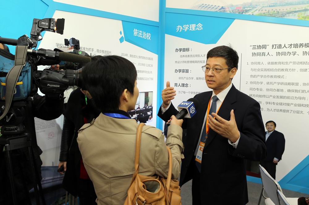 展会首日,校党委副书记夏斯云、副校长程维明在我校展台接受了上海电视台、上海教育电视台、上海广播电台、解放日报、新民晚报等媒体的专访。