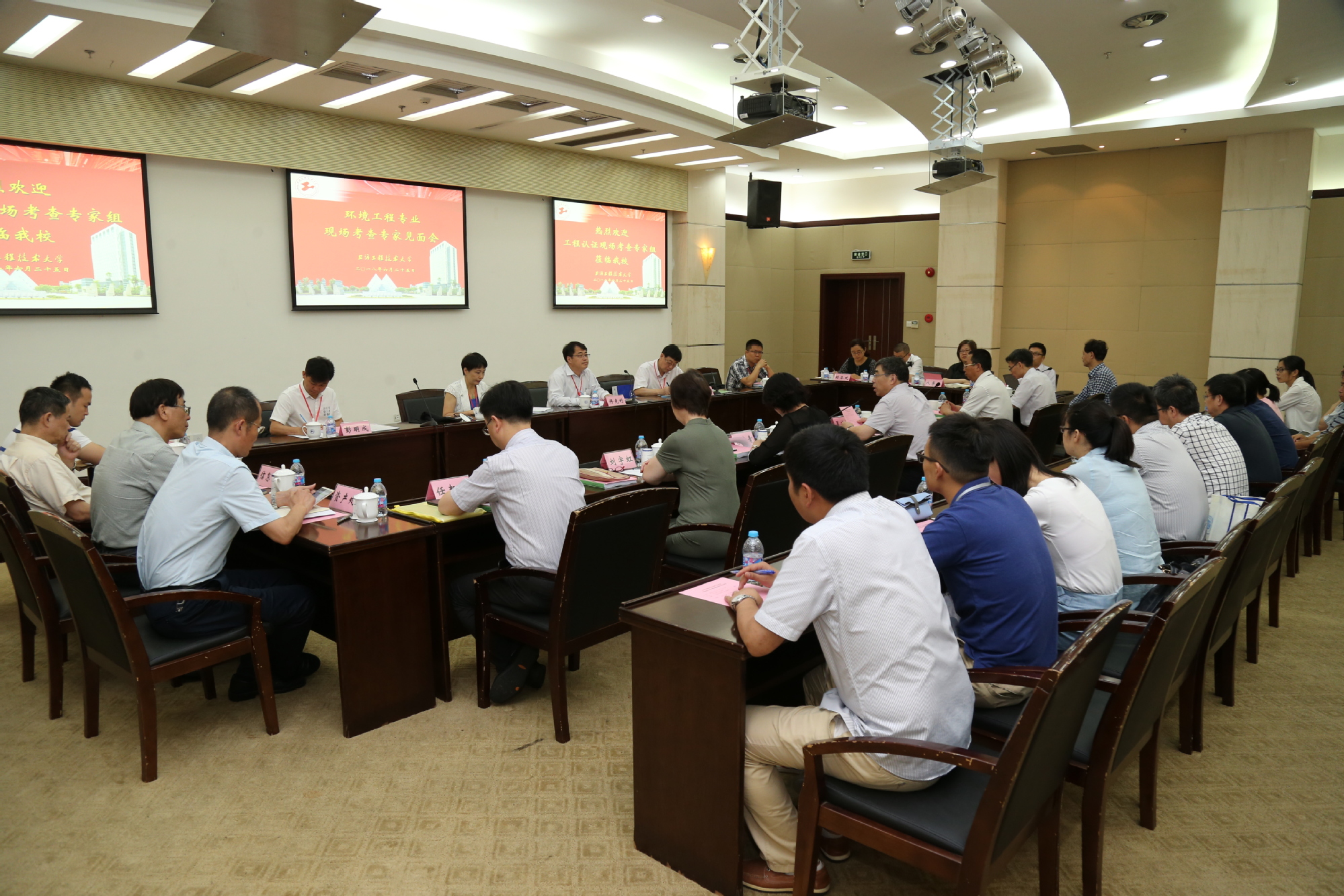 第二阶段由专家组组长华东理工大学修光利教授主持。修光利教授阐述了我国工程教育专业认证和环境工程专业认证的基本情况,明确了考查的目的和要求。他指出,现场考查是专业认证的重要环节,主要目的是核查被考查专业自评报告的真实性准确性,了解自评报告中未能反映的相关事项。专家组将通过现场查看专业实验室、听课、查阅教学资料和管理文件,访谈教师代表、学生代表、毕业生代表、用人单位代表和管理人员等以全面了解和考查专业人才培养状况。