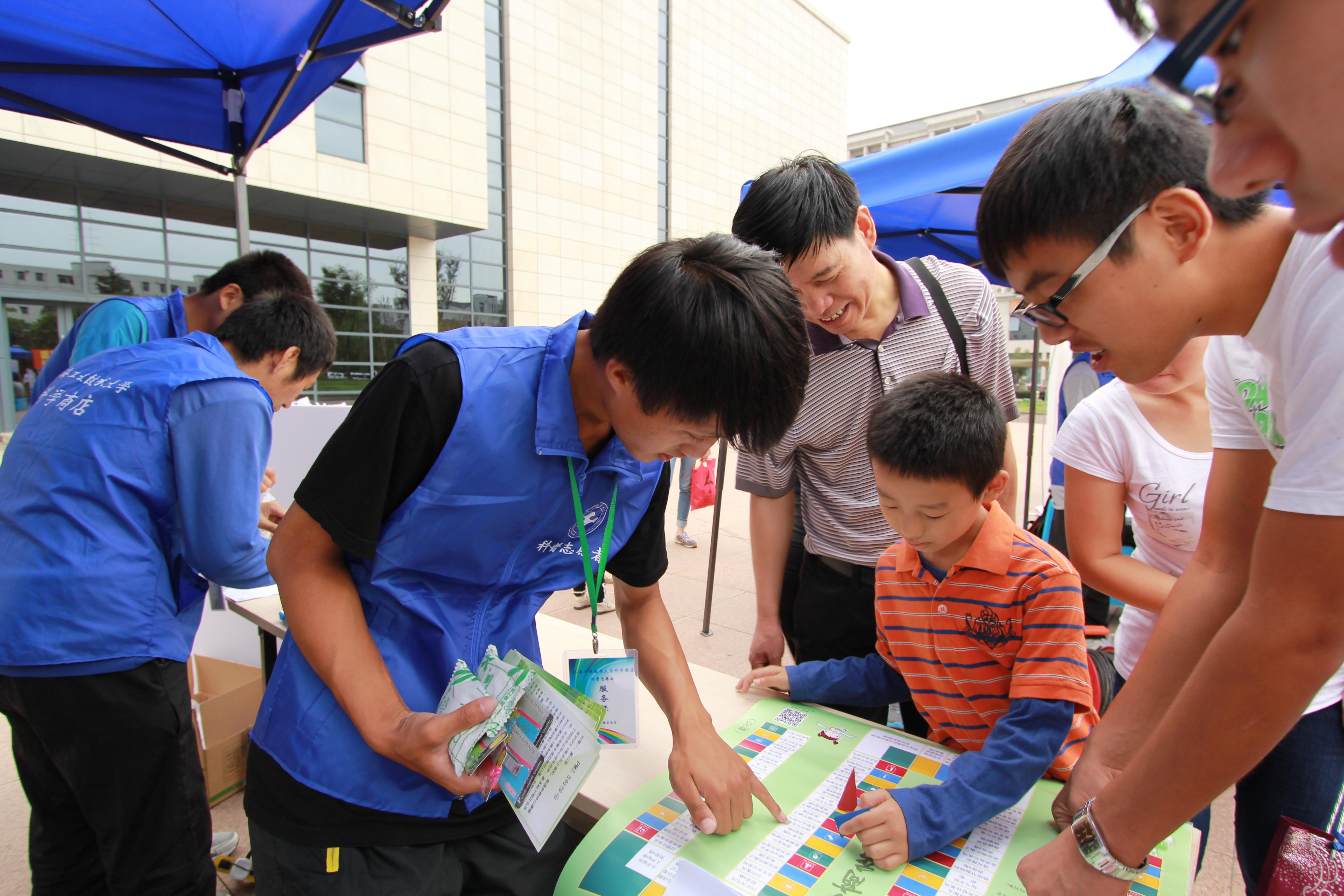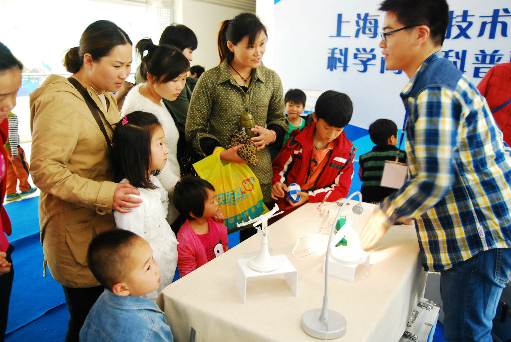 上海工程技术大学科学商店青年团队成立于2009年,在校领导和各相关学院党政领导的关心支持下,在科研处等职能处室的帮助下,团队以“夯实已有基础、拓宽服务平台、强化特色导入、注重成效反哺”为宗旨,不断深化服务内容,已在松江、青浦、黄浦的9个街道、乡镇开设有10家科普服务部、11家科普门店,涉及机械、电气、化工、汽车、艺术、航空、服装、轨道、中韩、社科等学院特色学科领域。现拥有一支300人规模,接受专业培训、统一测试的科普志愿者队伍,持证上岗、统一着装的他们被市民热情的称为:科普蓝精灵。