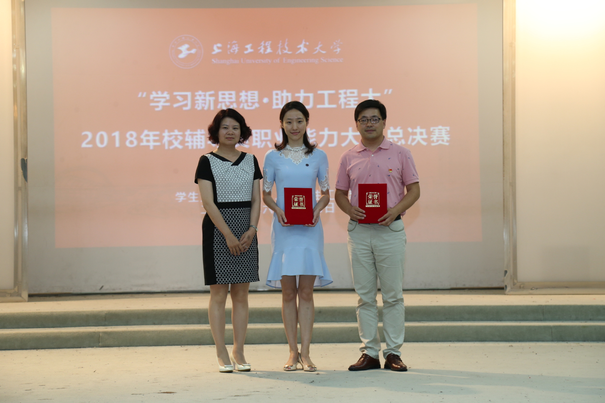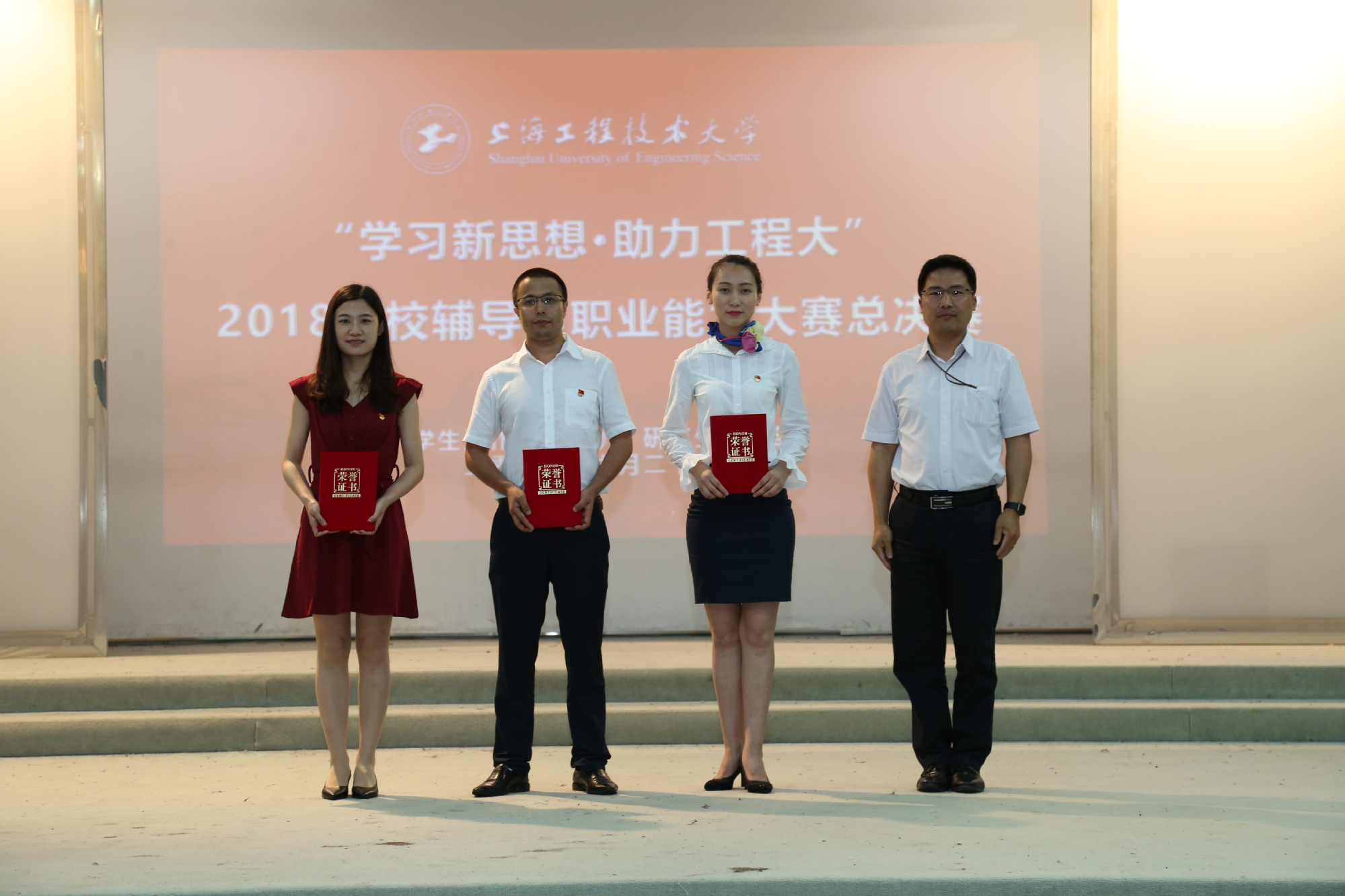 本次校辅导员职业能力大赛紧密围绕党的十九大和全国高校思想政治工作会议精神,对标上海市教委关于辅导员职业能力大赛的要求,丰富和创新比赛内容和形式,前期通过初赛、复赛环节,共有9名辅导员进入总决赛。大赛还邀请了获得2017年上海市辅导员职业能力大赛二等奖、汽车工程学院的叶寅老师为大家做宣讲展示。经过主题演讲和谈心谈话两个环节的精彩展示和激烈角逐,社会科学学院张强、外国语学院李雪苗荣获一等奖;航空运输学院(飞行学院)李茜希、轨道交通学院梅文静、学生工作部(处)、研究生工作部阿布都许库尔·居乃丁荣获二等奖;机械工程学院董春亮、管理学院白茹、化学化工学院郑文静、材料工程学院沈静荣获三等奖。